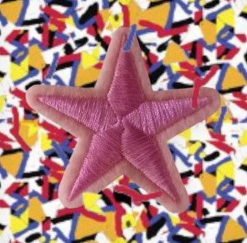 Sterren embleem Roze. Ook te verkrijgen in een voordeel setje van 3 roze emblemen voor 4  euro.