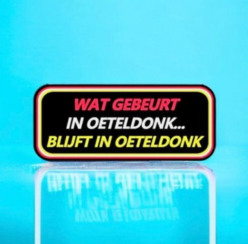 Tekst embleem What happens in Oeteldonk ...Stays in Oeteldonk