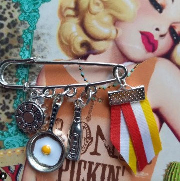 Ook te verkrijgen voor andere durpen. Geef de kleuren door bij opmerkingen bij je bestelling en je krijgt i.p.v. het Oeteldonks lint flosjes aan je speldjes.