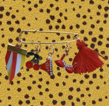 Speld met Oeteldonkslint kersjes, sexy bikini broekje en topje met glitters en met een rood flosje!