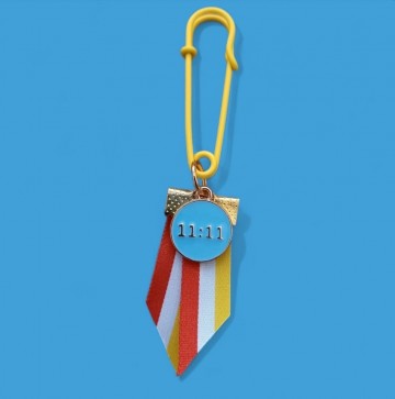 Speld met Oeteldonks lint: Rood, wit, geel lint en met 11-11 bedel. Kleur van de 11-11 bedel (zie foto) kun je aangeven bij de laatste stap van je bestelling bij notities. Heb je geen voorkeur aangegeven dan krijg je een willekeurige kleur.