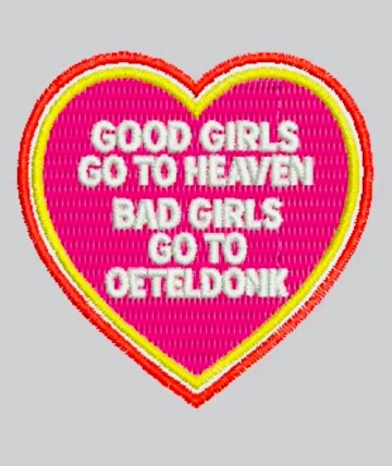 Tekst embleem met tekst: Good Girls Go To Heaven, Bad Girls Go To Oeteldonk