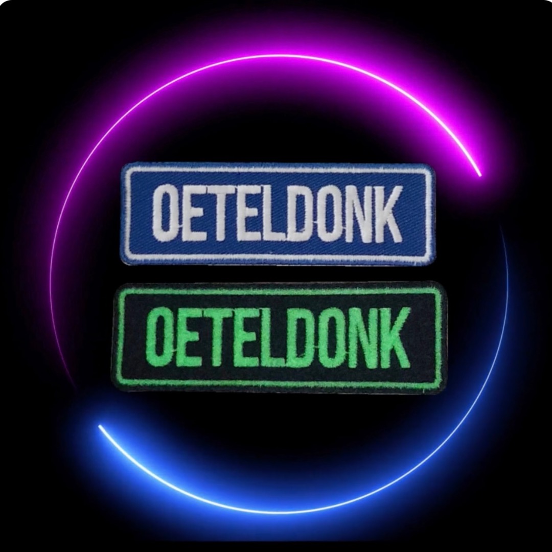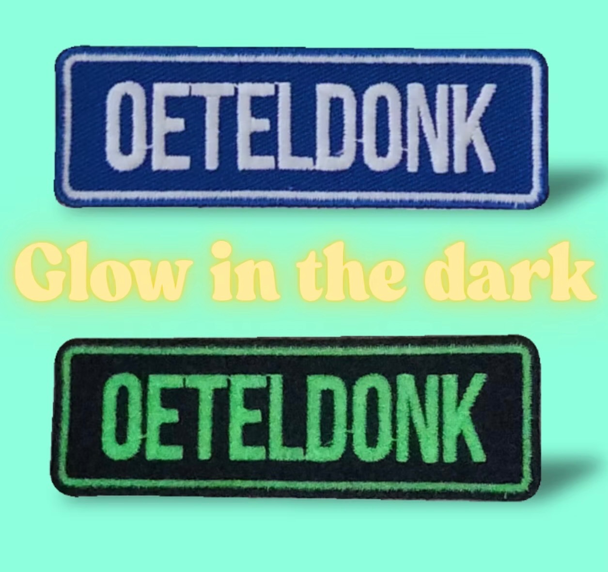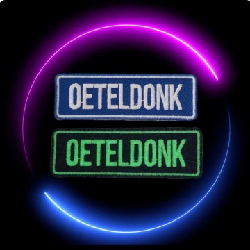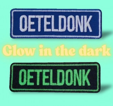 Naambord embleem Oeteldonk. En in het donker geeft ie licht.
