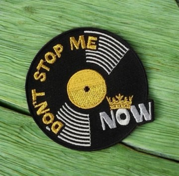Queen.. Don't stop me now. Mooi muziek embleem van mooie kwaliteit. Perfect om je outfit dat beetje extra te geven. Het is een rond embleem met tekst die er wat uitspring zodat het lekker opvalt.