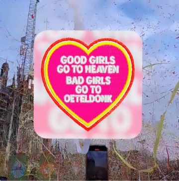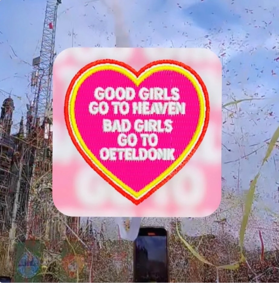 Tekst embleem met tekst: Good Girls Go To Heaven, Bad Girls Go To Oeteldonk