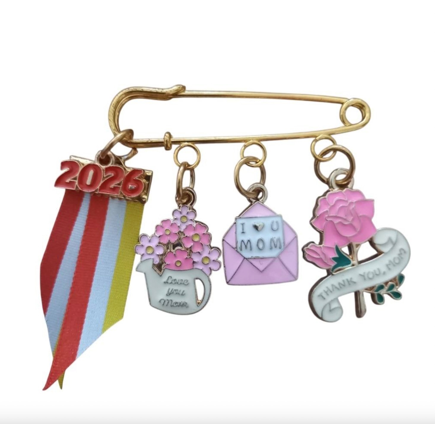 Speld met Roze bedels, Oeteldonks Lint en 2026 bedel.